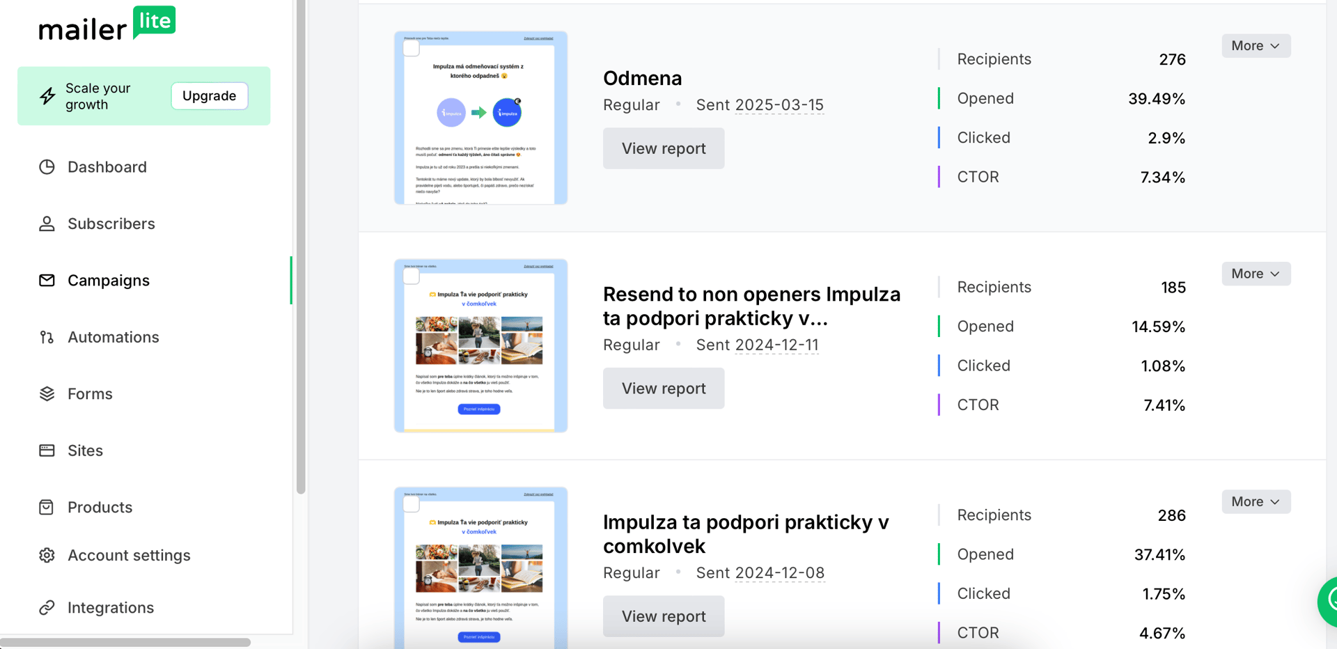 The screenshots above are email campaigns for our startup - Impulza. A project which I’ve been running from 2023-2025.